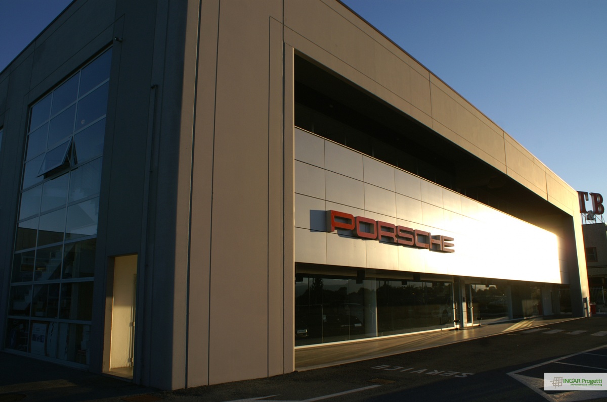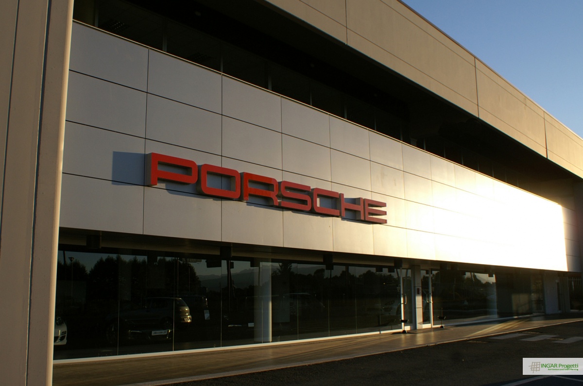Intervento di nuova costruzione per autosalone di prestigio Porsche Cuneo e magazzino ricambi per un totale di circa 2.000 mq, all’interno di un progetto di insediamento per attività polifunzionali per un totale di quattro fabbricati.
